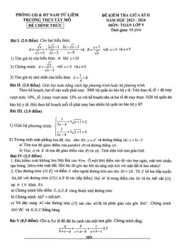 Đề thi môn toán giữa kỳ 2 lớp 9 tại trường THCS Tây Mỗ– Hà Nội | năm học 2023-2024