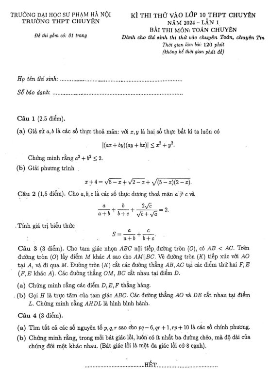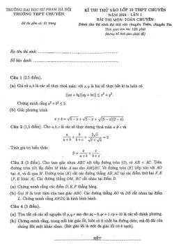 Đề thi thử vào lớp 10 chuyên Toán trường chuyên ĐHSP Hà Nội | năm học 2023-2024